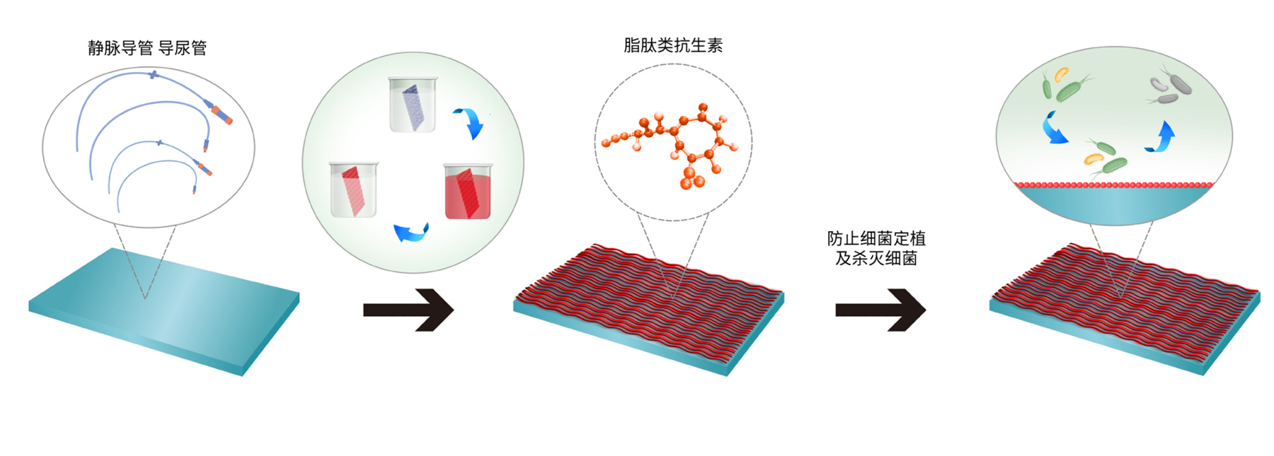 · 同时不断优化涂层工艺,实现新型抗菌涂层应用到不同种类的植入式医疗器械,如导尿管、引流管、支架、瓣膜和假肢等,在医疗器械表面建立长期稳定的抗菌环境,极大降低医疗器械伴随的感染风险,延长使用寿命,为患者的健康安全保驾护航。